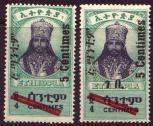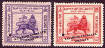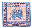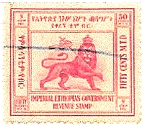 Postwar Overprints About 1942-1946 The Ethiopian Government's Short History of Ethiopian Stamps, (1955) states there were no revenue stamps before 1942. This history lists only two of the following overprint on the 1942 Second Restoration Definitives. It reports useage also as a postage due. The Amharic GEBI indicated Revenue, literally "that which is owed." The order of issue is not known.