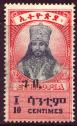 Postwar Overprints About 1942-1946 The Ethiopian Government's Short History of Ethiopian Stamps, (1955) states there were no revenue stamps before 1942. This history lists only two of the following overprint on the 1942 Second Restoration Definitives. It reports useage also as a postage due. The Amharic GEBI indicated Revenue, literally "that which is owed." The order of issue is not known.